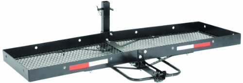 Dee Zee Cargo Carrier - Constructed of reinforced steel tubing. Bike rack bracket to hold up to two bicycles. Black powder coat to prevent rust. 500 lb. capacity. 60" x 20" x 2" surface area. Folding design. Fits Class III (2") hitch receivers....